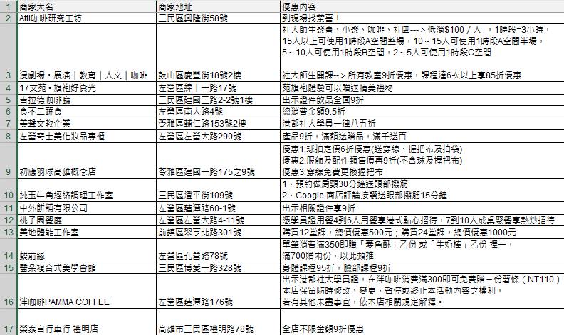 到下列優惠商家消費,就能享有專屬優惠!