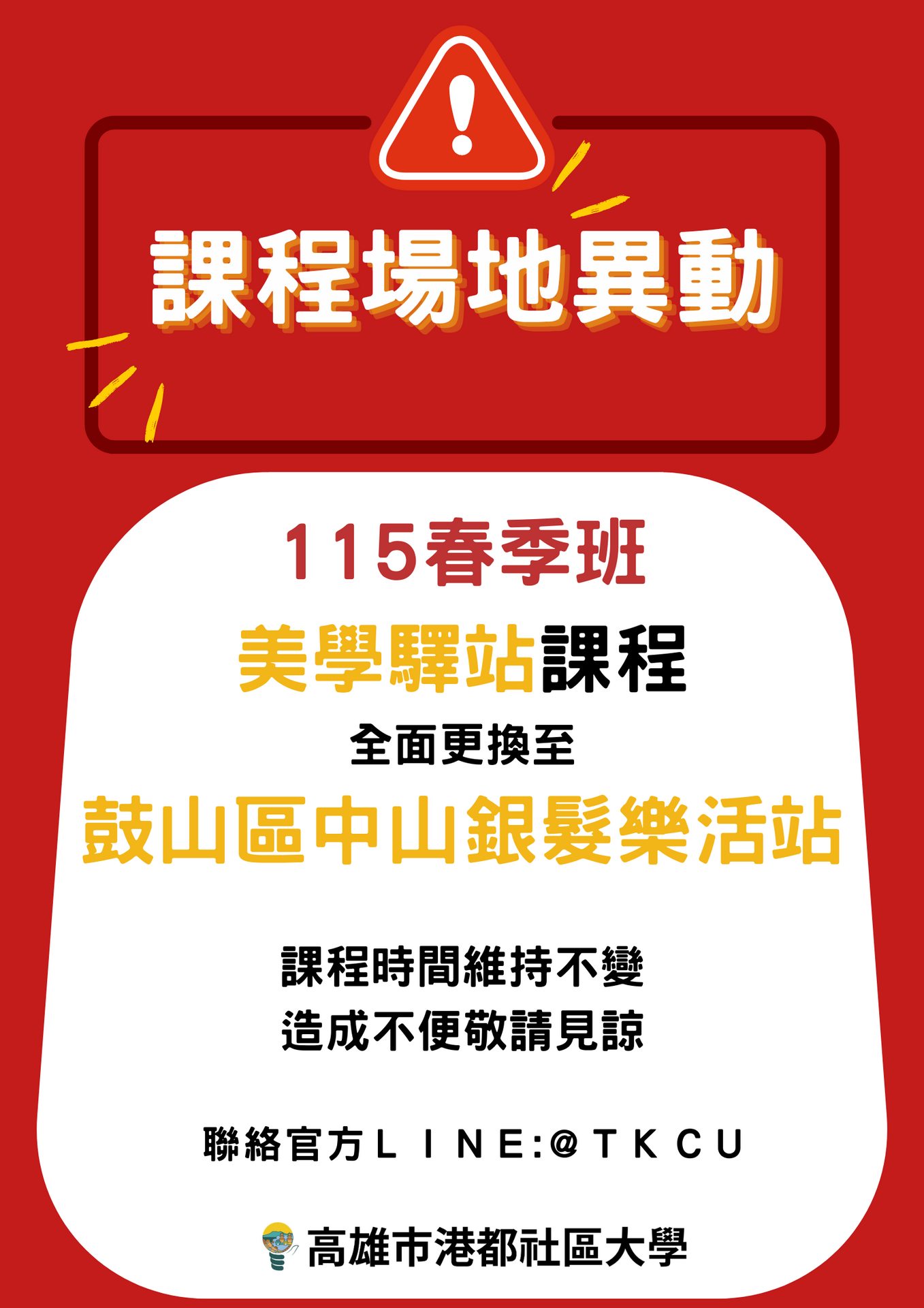 📢 課程場地異動通知 📢